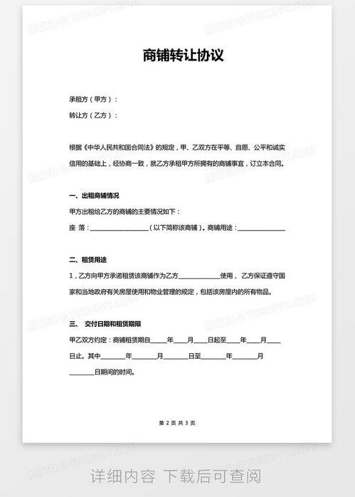 你有没有想过,有一天你的店铺突然间就换了主人?这可不是什么稀奇事哦!在今日头条上,就有这么一则店铺转让合同吸引了我的眼球。让我们一起来看看,这背后到底隐藏着哪些有趣的故事吧!